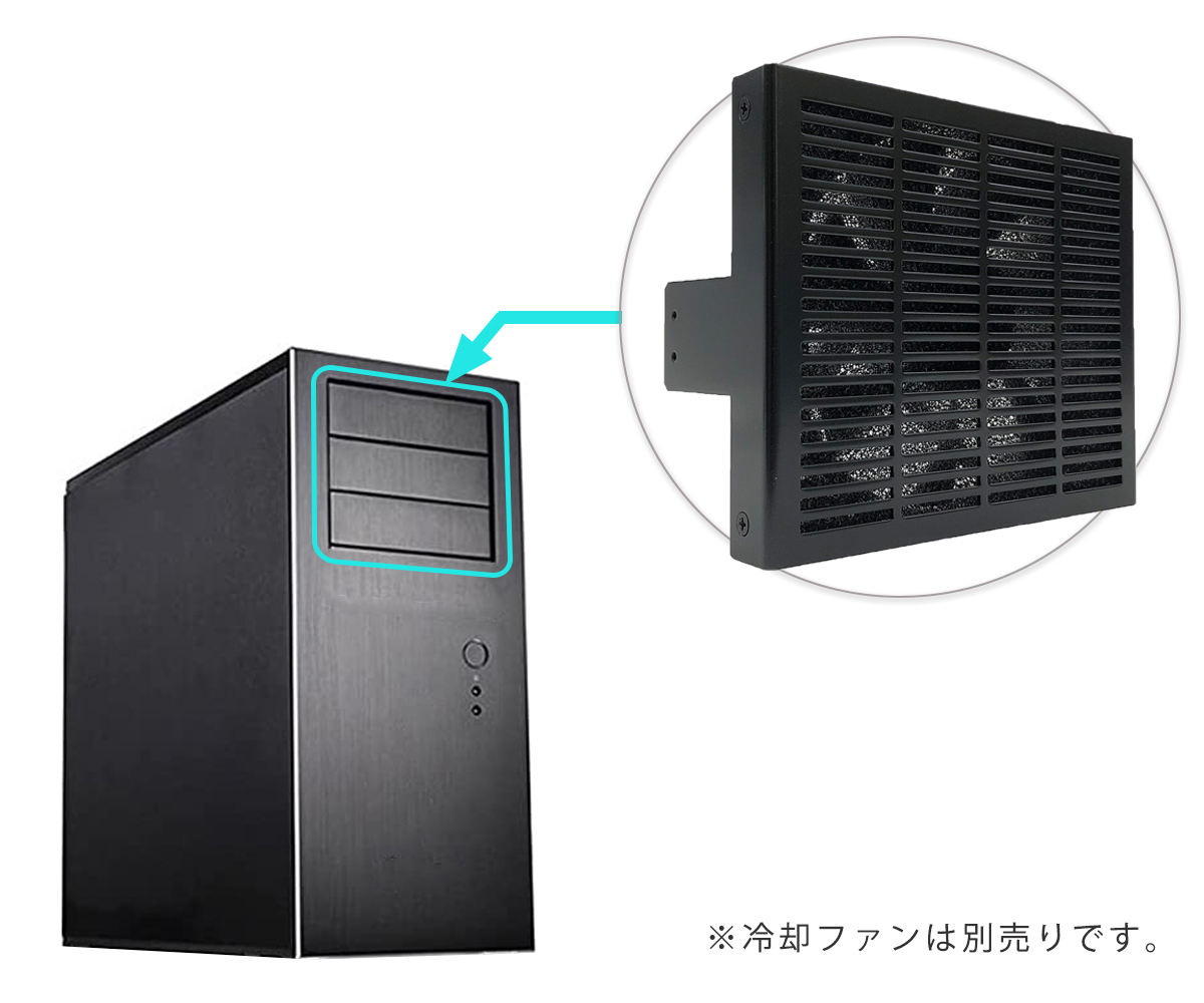 ※120mmサイズの冷却ファンを1台搭載可能です。注:冷却ファン別売り。